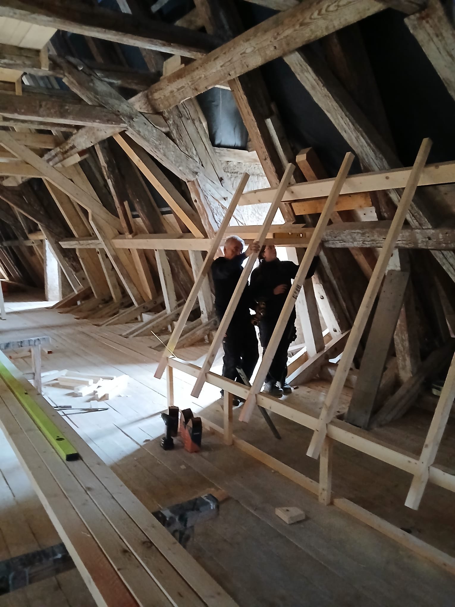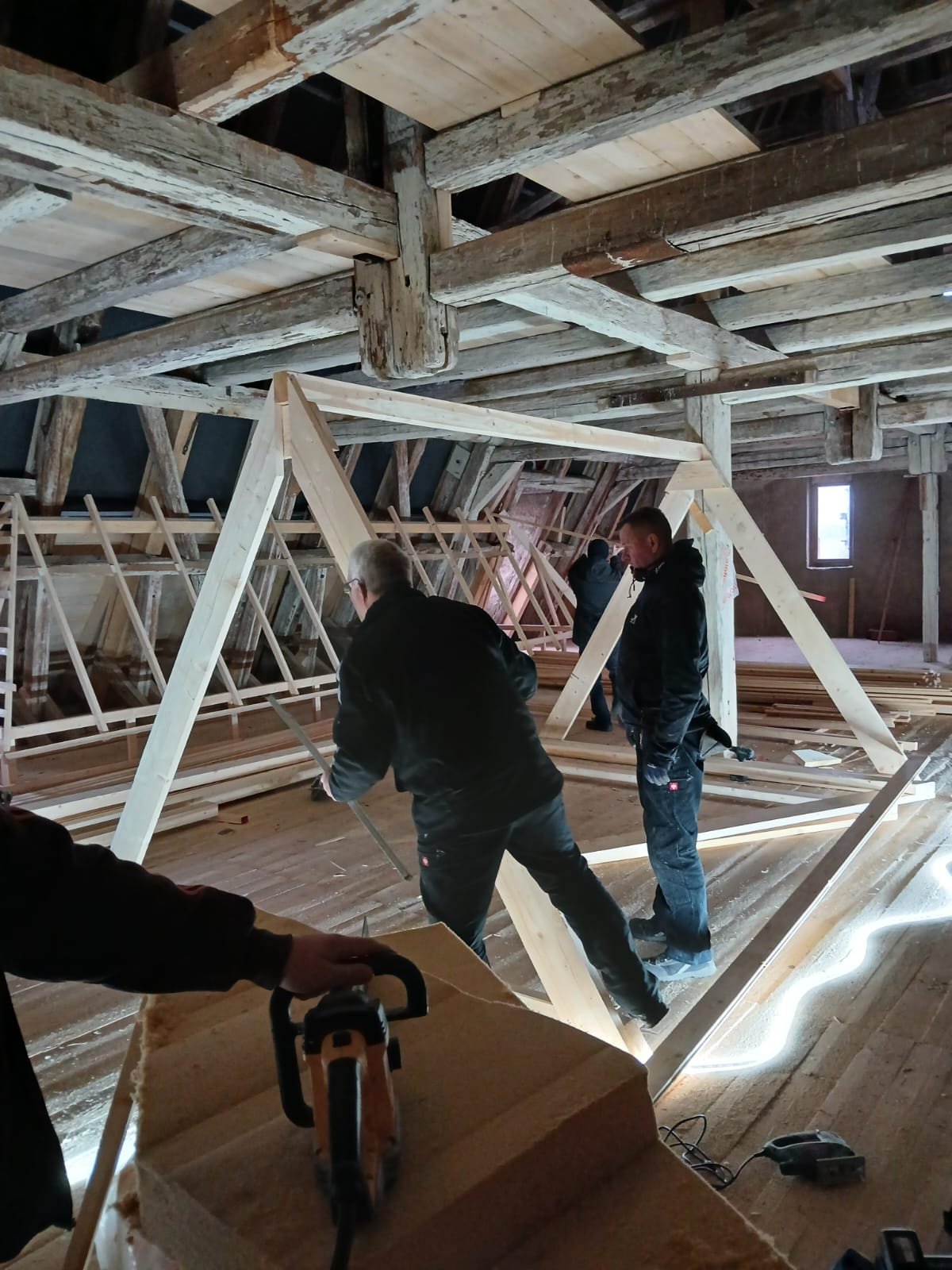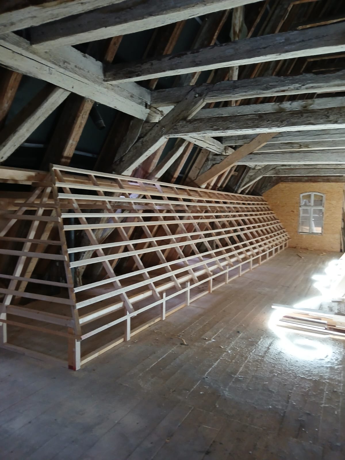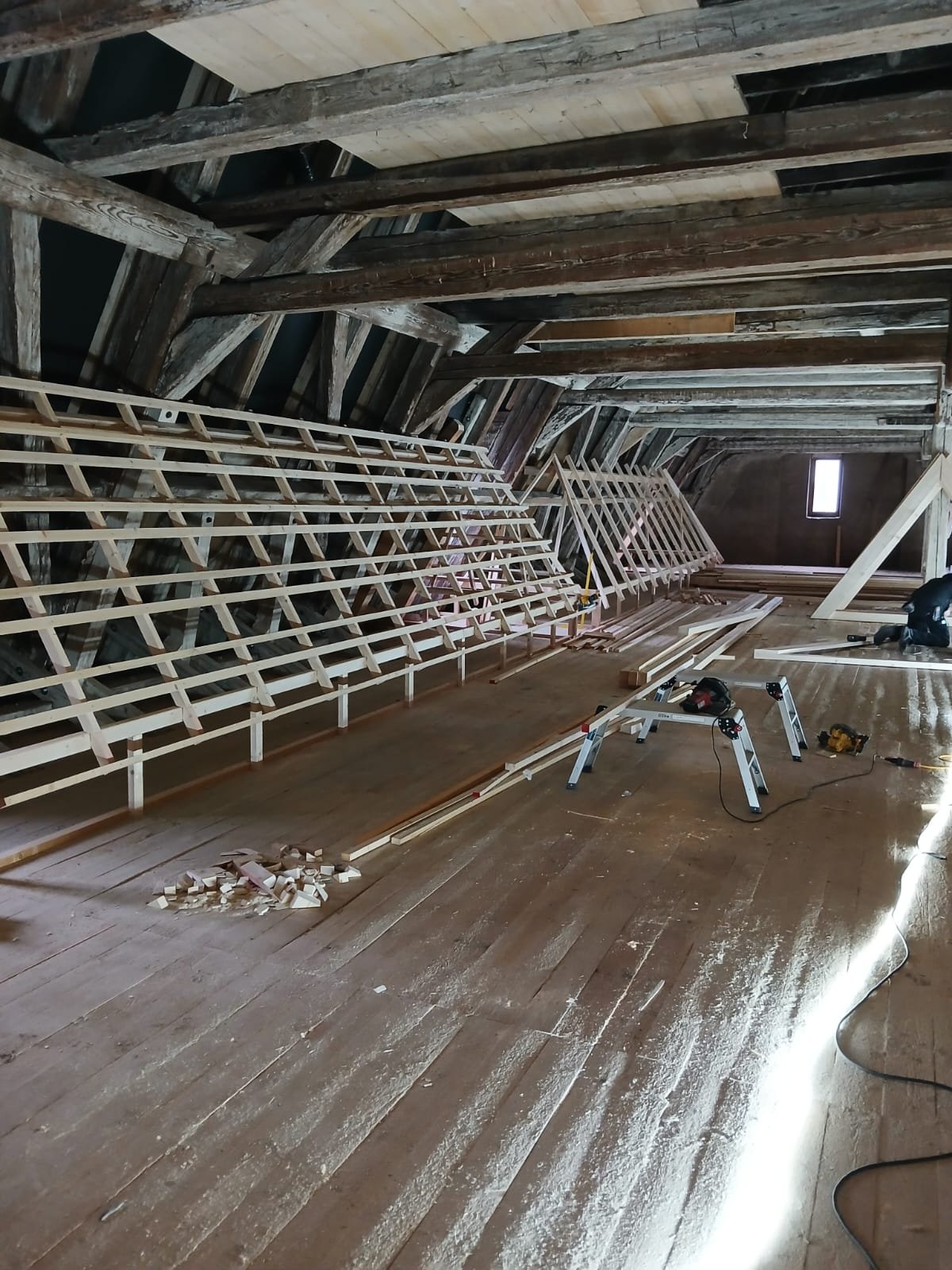Was anfänglich bis zum Start sehr lange gedauert hat geht nun um so schneller voran. Wie in der Ausgabe vom November 2025 angekündigt, wollen wir euch hier weiter über die Arbeiten der Dachdeckerinnung Meißen-Riesa-Großenhain an der Dachziegelausstellung auf dem Kornhaus in Meissen auf dem Laufenden halten. Die Mitglieder der Dachdeckerinnung haben seit dem November kräftig losgelegt und bis heut über 600 Arbeitsstunden in das Museum gesteckt. Zwischenzeitlich wurde der größte Teil der Modelle fertig gestellt und auch zum größten Teil mit den Ausstellungsstücken behangen. Das Büro wurde soweit fertig gestellt, dass es abschließbar und beheizbar ist. Die Elektroinstallation im Büro wurde installiert und der Ausstellungsbereich mit einer Trennwand vom restl. Dachboden abgetrennt. Hier gilt ein ganz besonderer Dank den sehr engagierten Firmen unserer Innung und natürlich auch unseren Altmeistern.