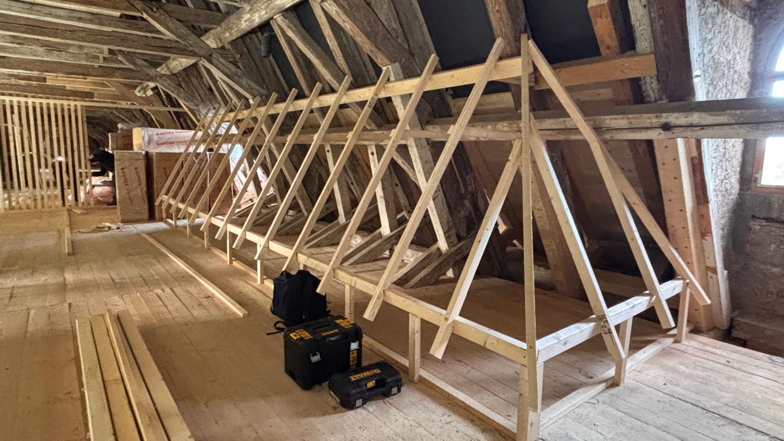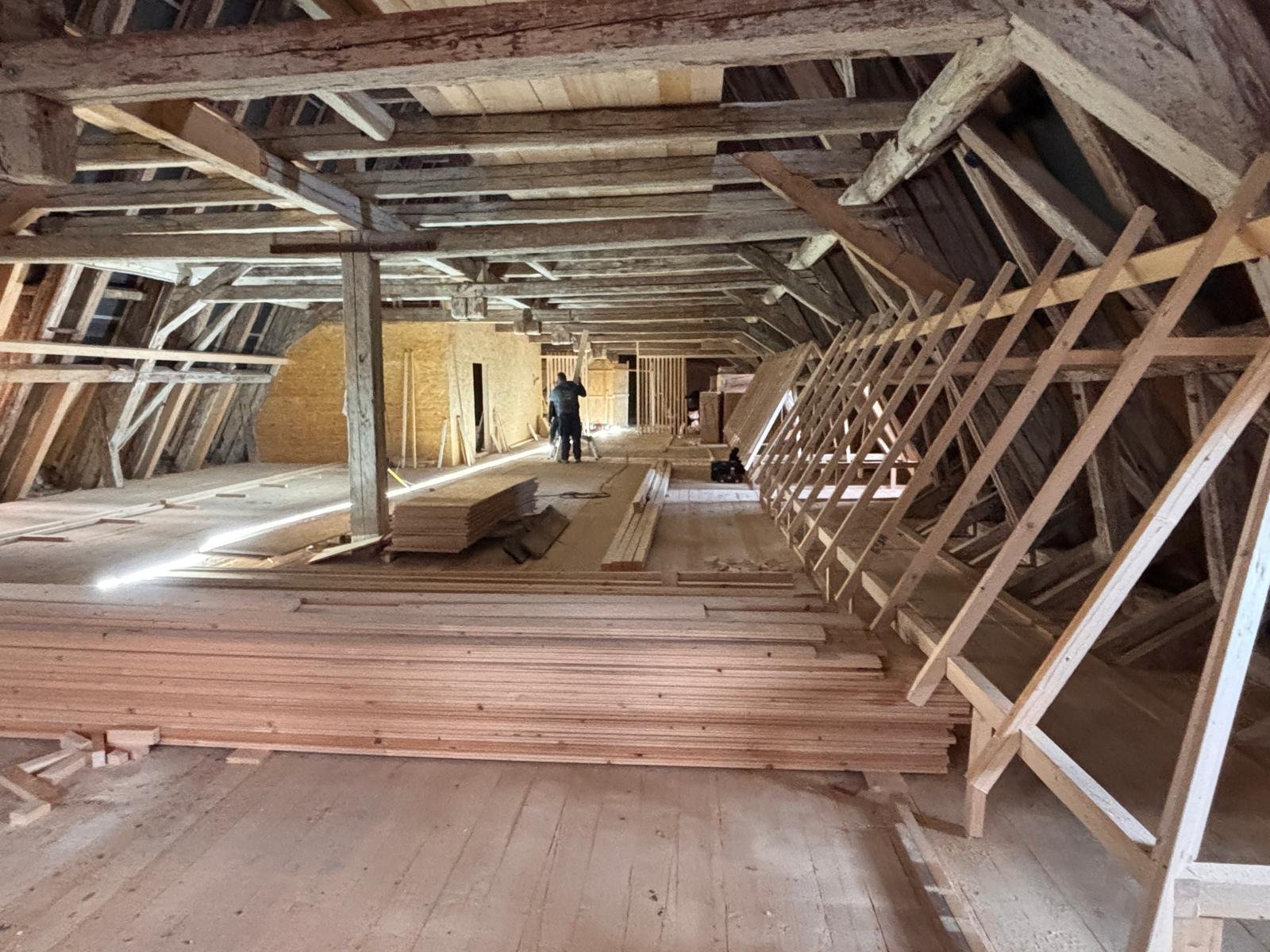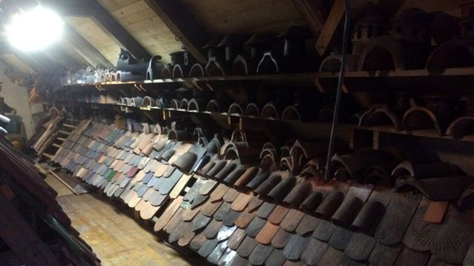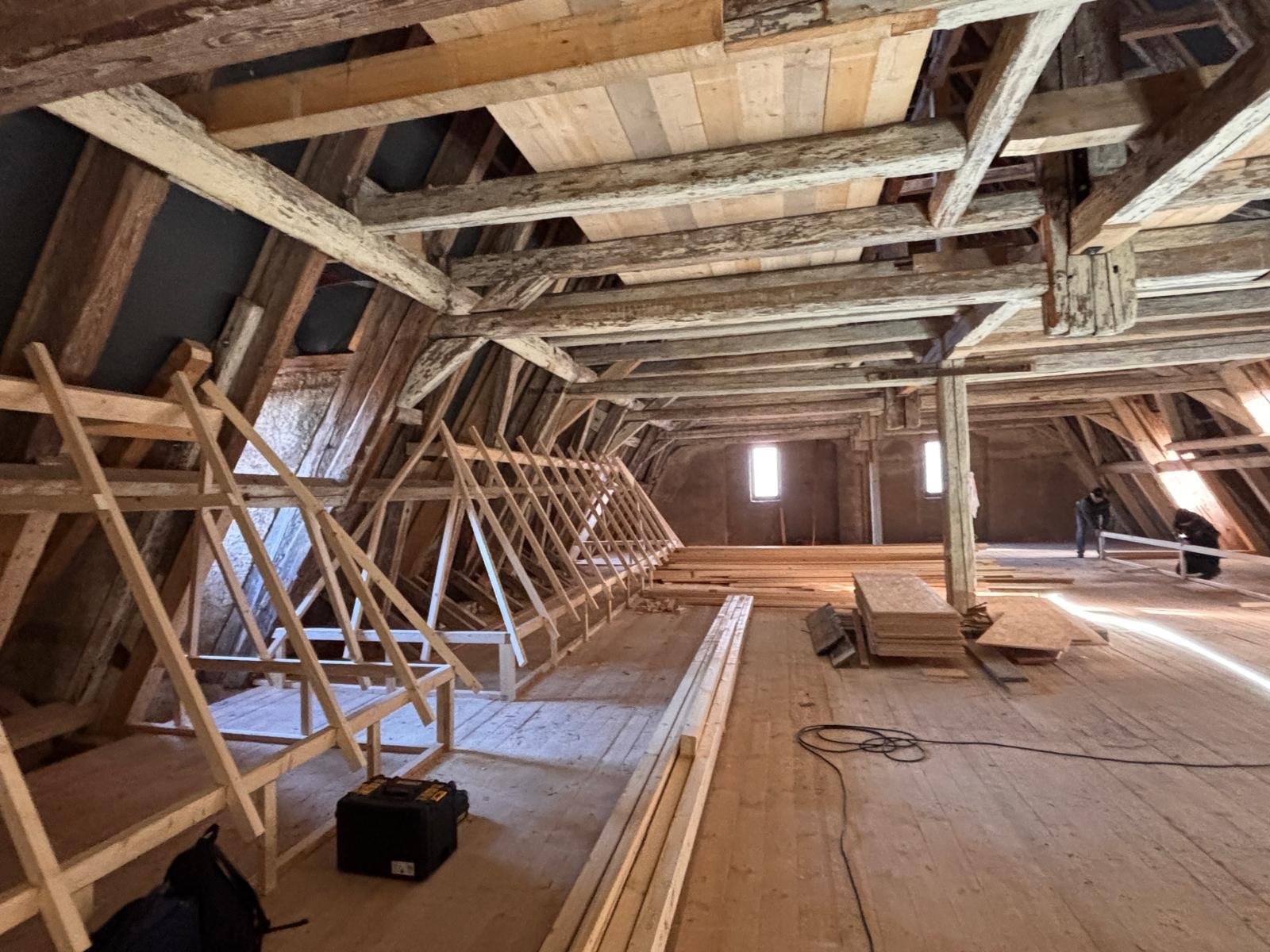 Auf dem Dachboden soll nun eine für die Öffentlichkeit zugängliche Ausstellung der Dachziegel entstehen. Und nicht nur dass, hier sollen auch alten Handwerkszeuge und Maschinen aus dem Dachdeckerhandwerk präsentiert werden. Dazu soll auch ein kleines Büro eingerichtet werden in welchem alte Schreibutensilien, Rechenmaschinen und vieles mehr ausgestellt werden sollen.