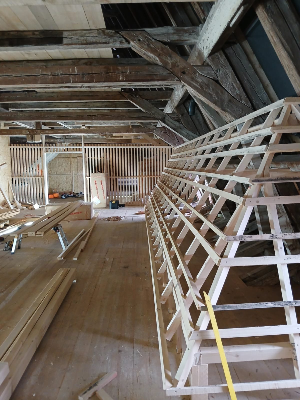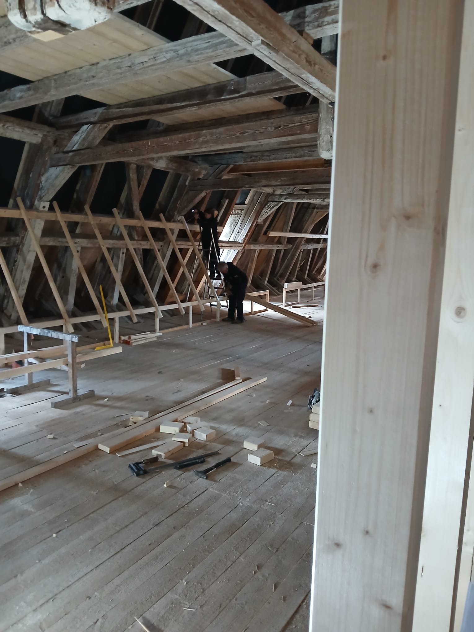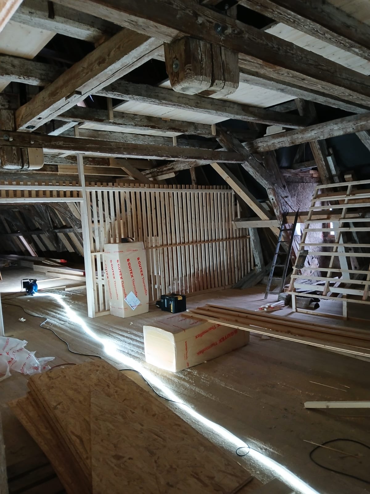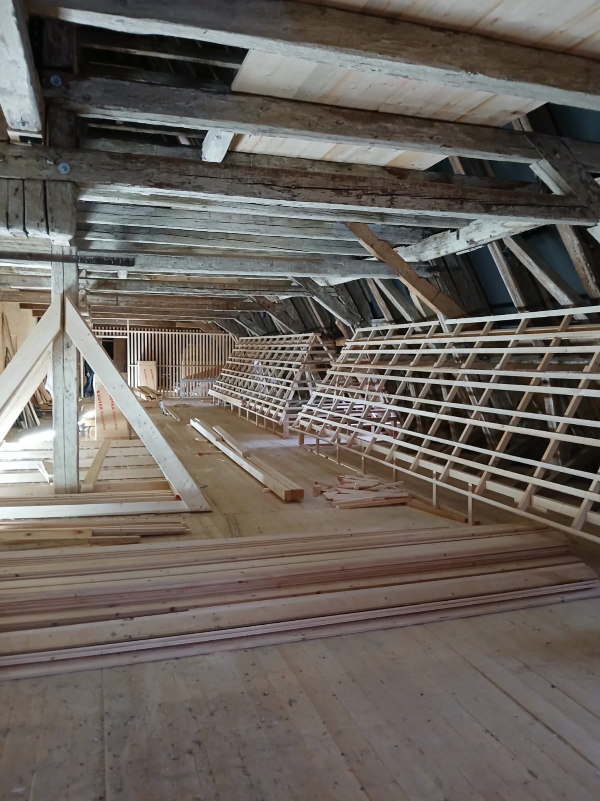 Auf dem Dachboden soll nun eine für die Öffentlichkeit zugängliche Ausstellung der Dachziegel entstehen. Und nicht nur dass, hier sollen auch alten Handwerkszeuge und Maschinen aus dem Dachdeckerhandwerk präsentiert werden. Dazu soll auch ein kleines Büro eingerichtet werden in welchem alte Schreibutensilien, Rechenmaschinen und vieles mehr ausgestellt werden sollen.
