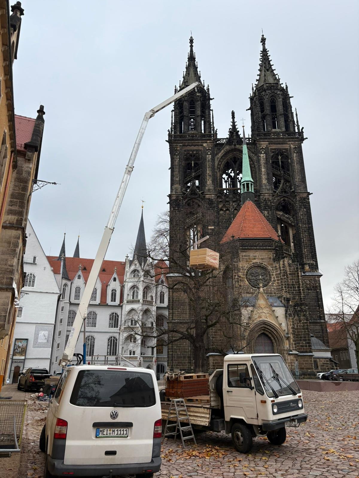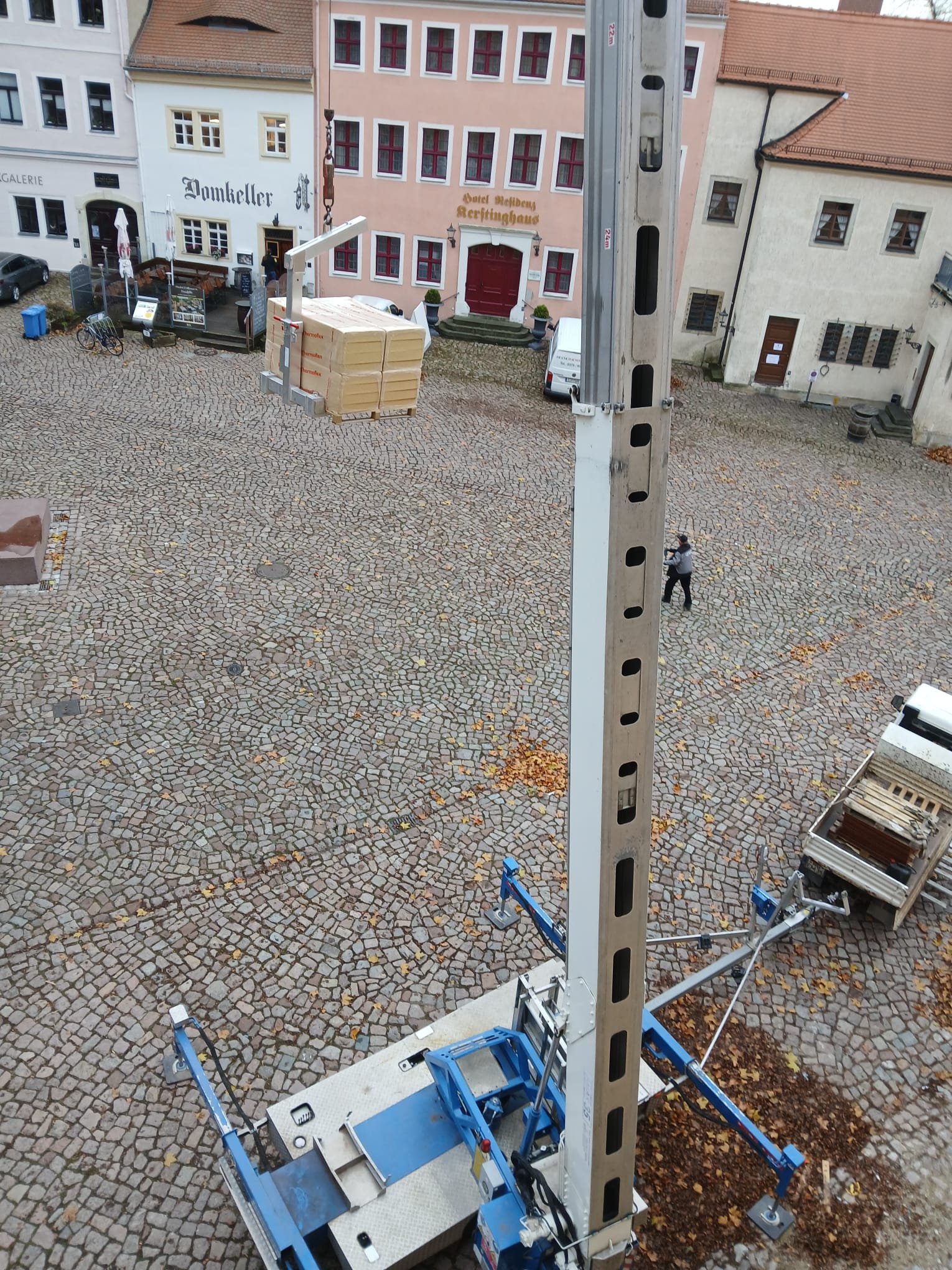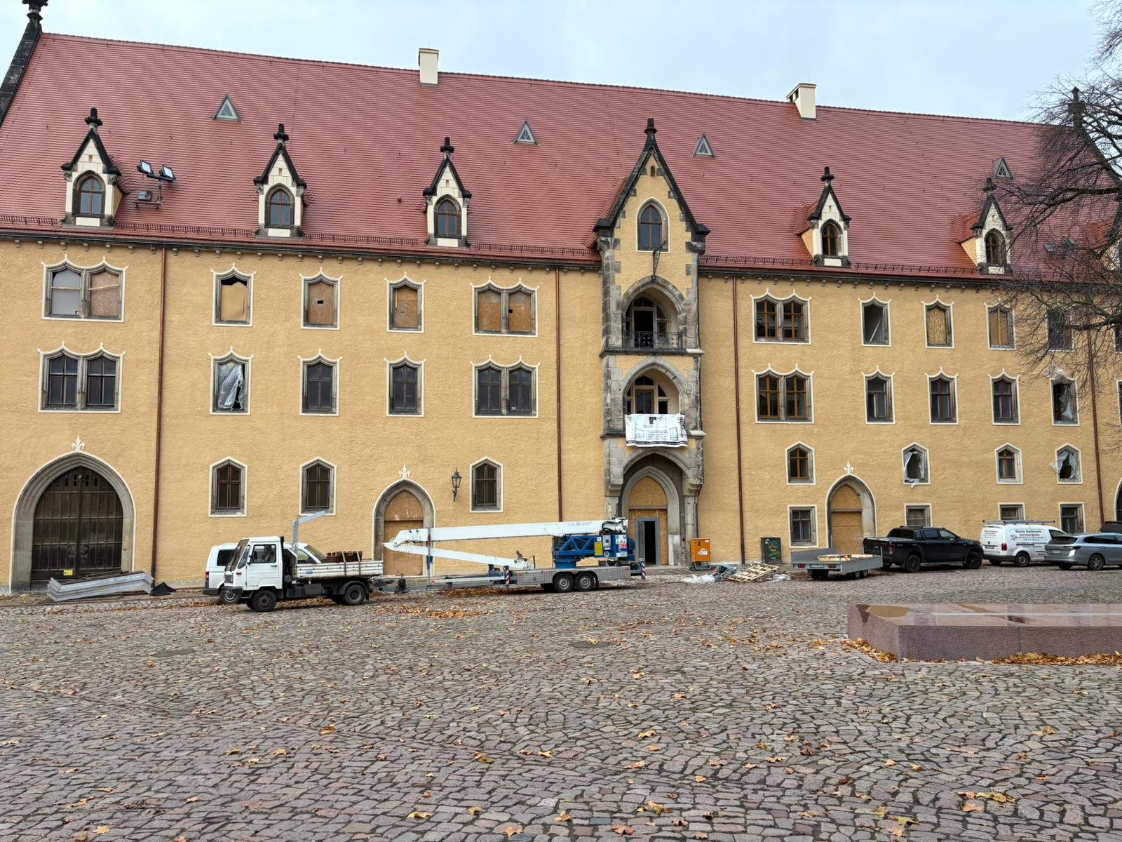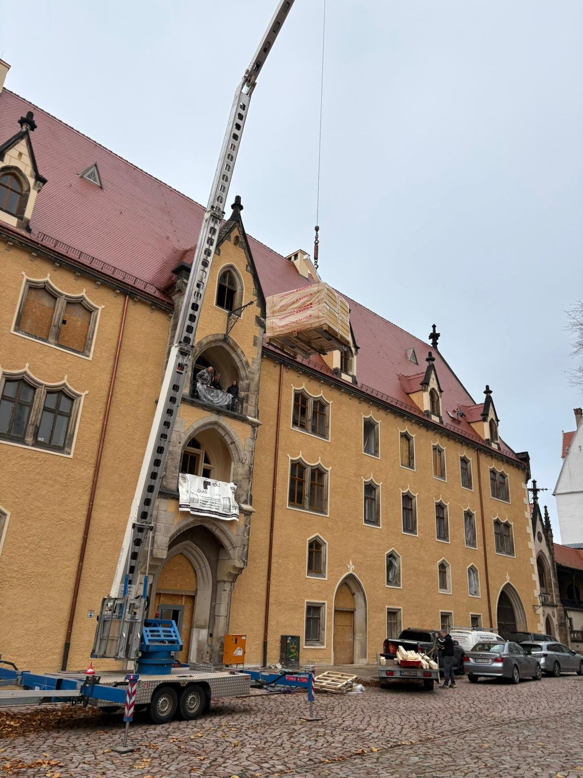 Hierzu wurde die Dachziegelsammlung, welch ca. 2000 verschieden Exemplare von meist sehr alten Dachziegeln beinhaltet vom Dachboden des Schloss Klipphausen auf den Dachboden des Kornhausumgelagert. Die Mitgliederbetriebe der Dachdeckerinnung Meißen-Riesa-Großenhain waren dafür mit 2 Autokränen und ca. 20 Dachdeckern und mehreren Transporten angetreten um die Ziegel vorsichtig auf Paletten durch die schmalen Burgtore auf den Domplatz und schließlich mittels Kran auf den Dachboden des Kornhauses zu transportieren.